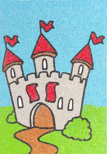 Conținut: 1 buc 21x30 cm desen șablon, 6 pachete cu nisip colorat (30 gr+/-5%)